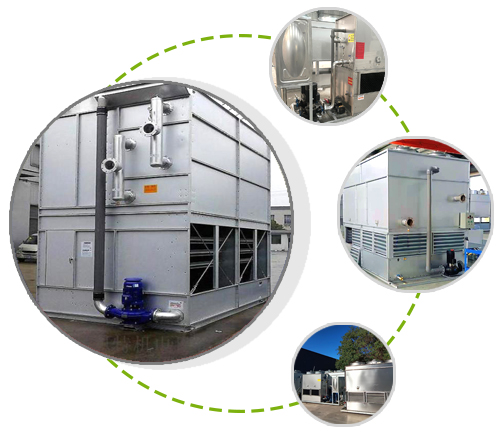 閉式冷卻塔在化工行業中應用廣泛,主要用途包括循環介質的降溫與制冷,如循環水、冷媒、液壓油、淬火液等。它通過塔內水噴淋、空氣流通以及水循環進行熱交換,實現降溫或制冷目的。閉式冷卻塔提